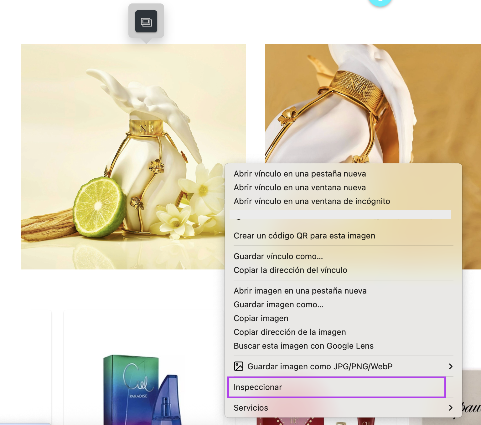 d. Una vez subida, hacé clic derecho sobre la imagen y seleccioná “Inspeccionar”.