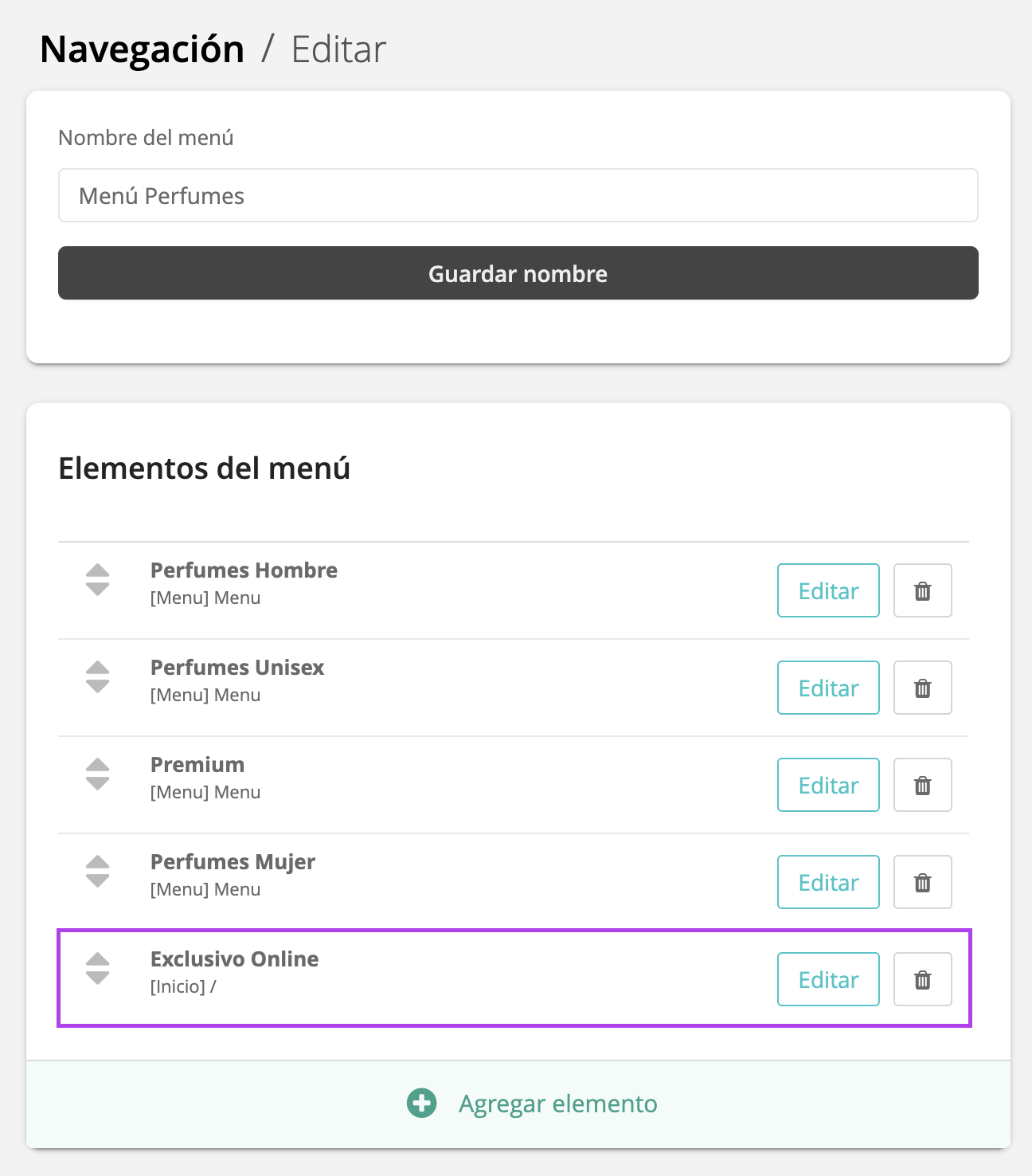 Lo hice sobre el elemento “Exclusivo online”, pero vos podés hacerlo sobre otro, sobre más de uno o incluso sobre todos los elementos del menú.